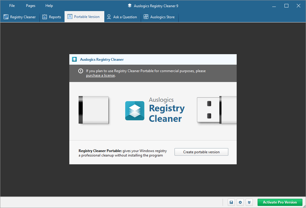Incluso puede crear su propia versión portátil de Auslogics Registry Cleaner desde la pestaña “Versión portátil” de este software. Esto es útil para aquellos que no quieren mantener instalada esta aplicación en su PC. Simplemente cree una versión portátil de la aplicación y desinstale el archivo principal. Una vez que se crea una versión portátil, puede guardarla en cualquier unidad flash USB o disco duro externo. Cuando sienta que se requiere limpieza para su registro de Windows, simplemente ejecute la aplicación y comience a limpiar. No es necesario volver a instalarlo.