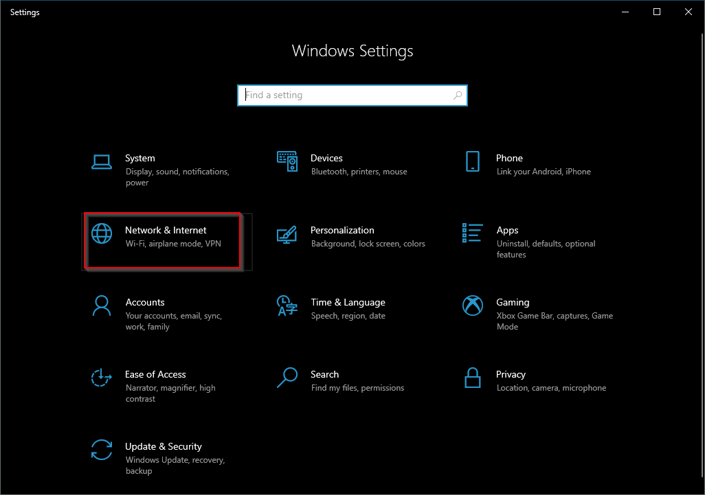Paso 2. En el Ajustes ventana que se abre, haga clic en el Red e Internet categoría.