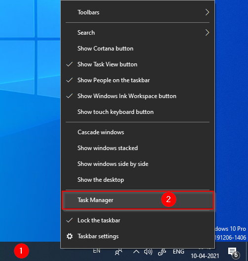 Paso 1. Haga clic con el botón derecho en el espacio libre en la barra de tareas de Windows y seleccione Administrador de tareas de las opciones disponibles.