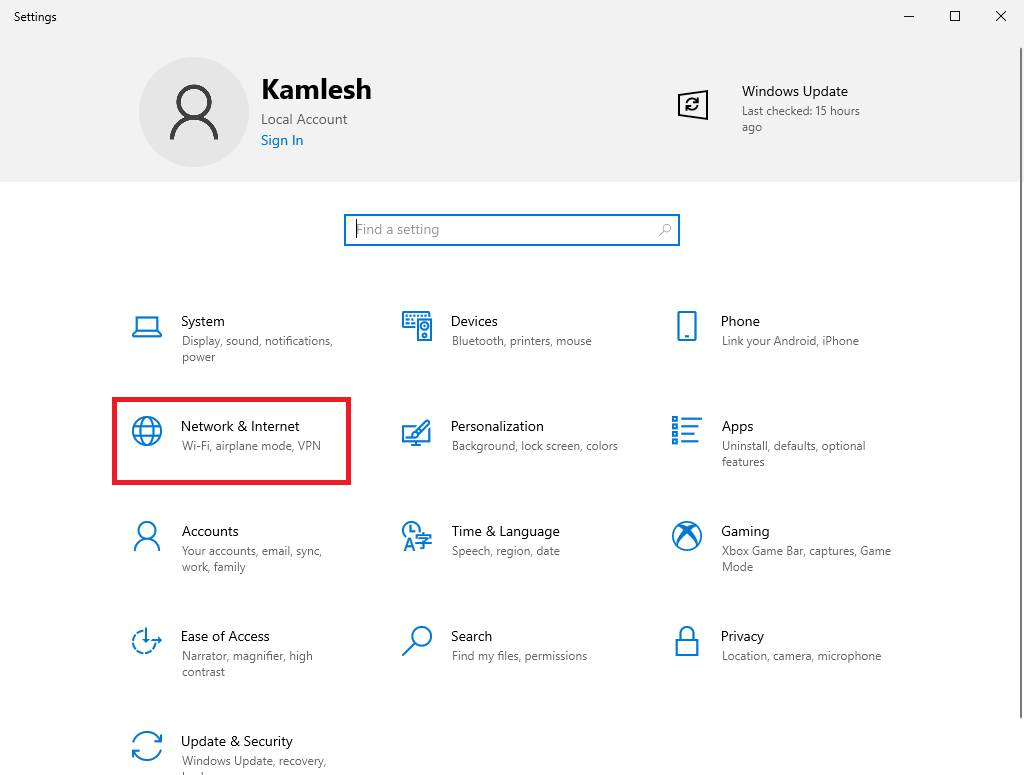 Paso 1. Presione Logotipo de la ventana + I Tecla de acceso rápido para abrir la aplicación Configuración en Windows 10.