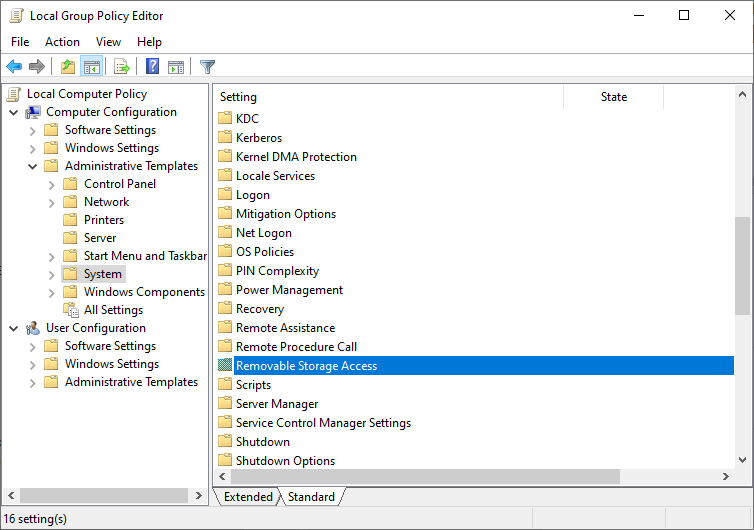 En Windows 10 Pro (Enterprise o educación), es la forma más fácil de evitar que los usuarios accedan al almacenamiento extraíble mediante el Editor de políticas de grupo local. Si está ejecutando Windows 10 Home Edition, habilite la Política de grupo (gpedit.msc) primero, luego haga lo siguiente: –