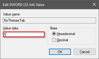 Si desea permitir que los usuarios cambien el tema, haga doble clic en el NoThemesTab y cambiar su valor de 1 para 0.