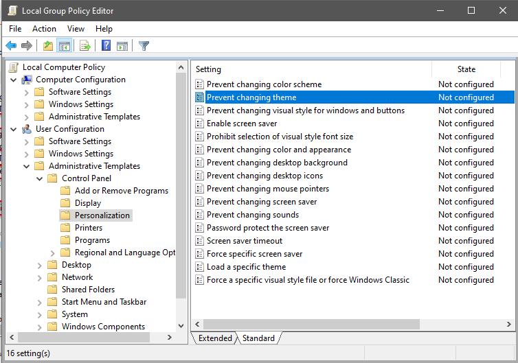 - Evite que los usuarios cambien el tema en Windows 10/8/7 usando el Editor de políticas de grupo.
