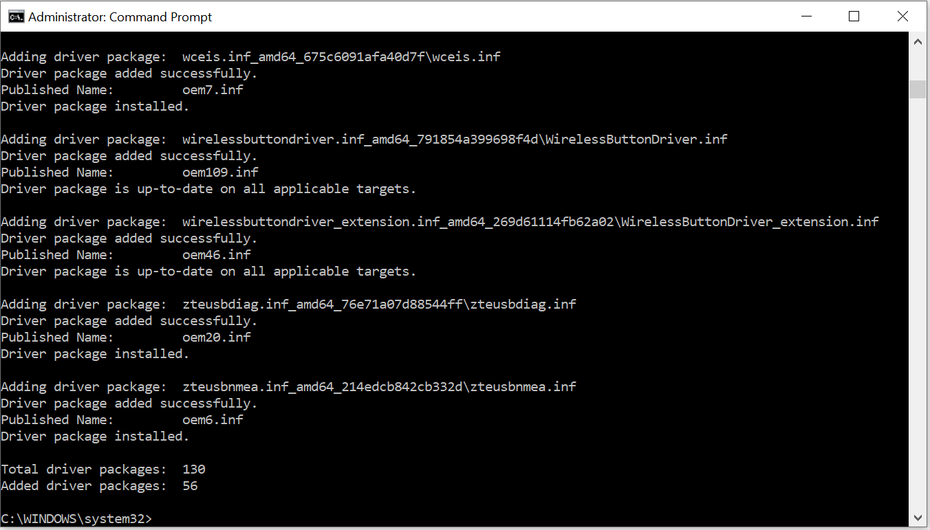 pnputil /add-driver "F:Drivers_Backup*.inf" /subdirs /install /reboot