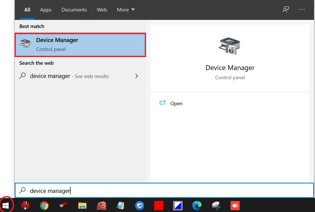 Paso 1. Haga clic en el Comienzo botón y escriba administrador de dispositivos.