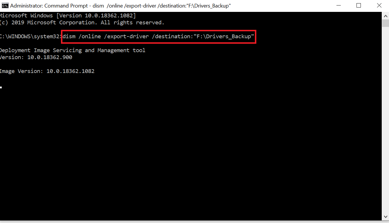 Si planea instalar un Windows 10 nuevo, es posible que los controladores correctos no estén disponibles en el sitio web del fabricante. Por lo tanto, si planea instalar un sistema operativo nuevo, debe mantener una copia de seguridad de su hardware. La herramienta DISM (Deployment Image Servicing and Management) es responsable de Windows 10 para el correcto funcionamiento del controlador. Es una herramienta integrada de línea de comandos, que está disponible en Windows 8 y versiones posteriores. También se utiliza para dar servicio y preparar imágenes de Windows. También se puede utilizar para escanear y reparar la imagen de Windows. La misma herramienta se utiliza para realizar copias de seguridad y restaurar controladores.