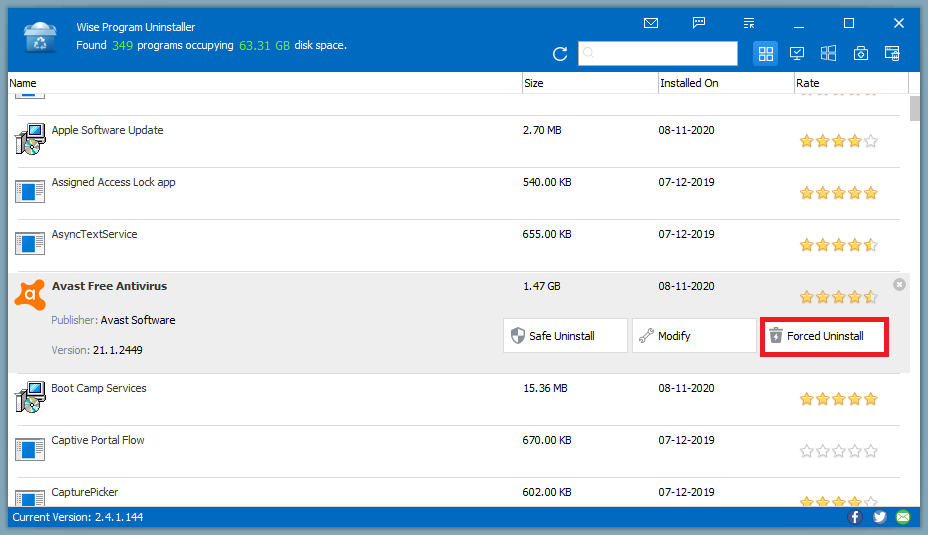 Una vez que descargue, instale y ejecute Wise Program Uninstaller en su PC, le permitirá desinstalar rápida y completamente cualquier programa. Es la solución perfecta para desinstalar software de Windows, lo que le permite desinstalar programas de forma rápida y completa utilizando su interfaz simple y fácil de usar. Además, el motor de escaneo incorporado escanea y elimina todos los archivos, carpetas y elementos de registro asociados sobrantes después de la desinstalación, asegurándose de que el software se elimine por completo de su computadora.