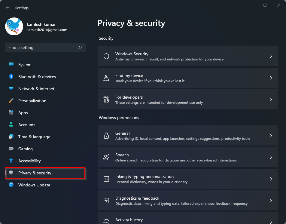 Paso 2. En el Ajustes, Seleccione Privacidad y seguridad categoría del panel de navegación del lado izquierdo.